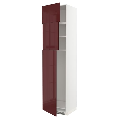 Metod High Cab For Fridge With 3 Doors White Kallarp High Gloss Dark Red Brown 60x60x240 Cm Ikea