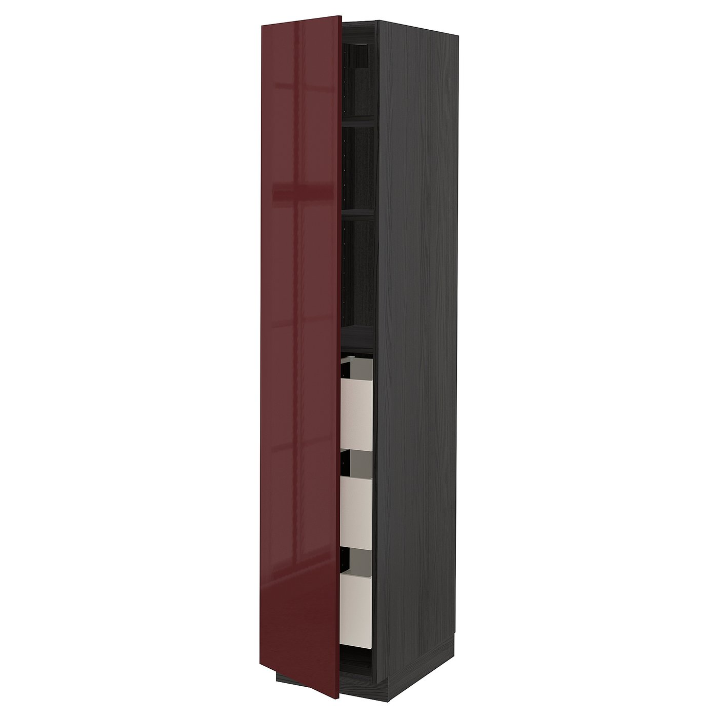 Metod Maximera High Cabinet With Drawers Black Kallarp High Gloss Dark Red Brown 40x60x200 Cm Ikea